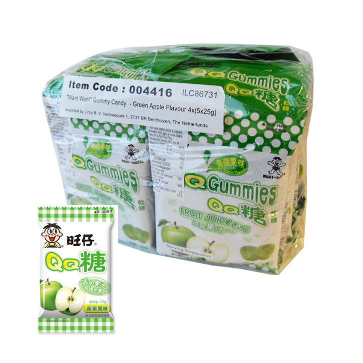 Want Want Bonbons gommeux - Arôme de pomme verte 24x5x20g sac